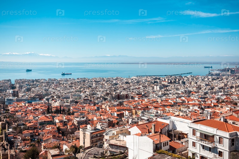 Вид на город Салоники, море и корабли