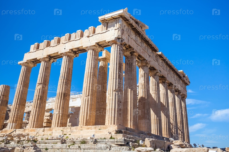 Парфенон храм в солнечный день. Акрополь в Афинах, Греция