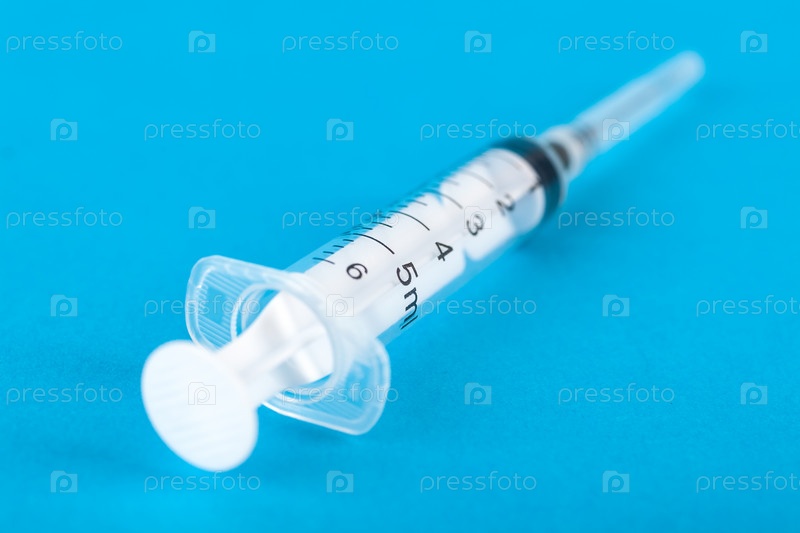 Одноразовый шприц на синем фоне