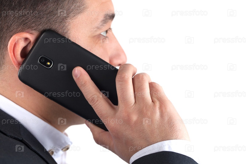 Мужчина в черном костюме говорит по мобильному телефону
