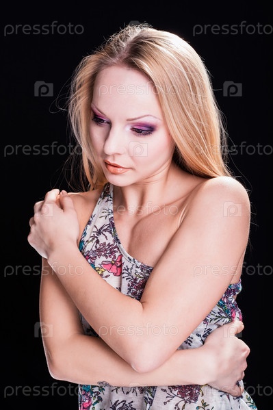 Портрет молодой женщины на черном фоне