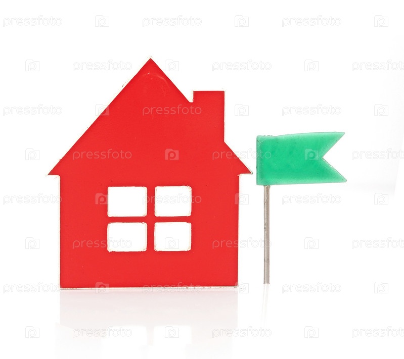 Красный домик с зеленым флагом