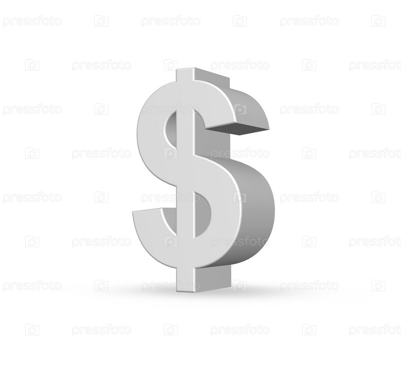 Знак доллара на белом фоне - 3D иллюстрация