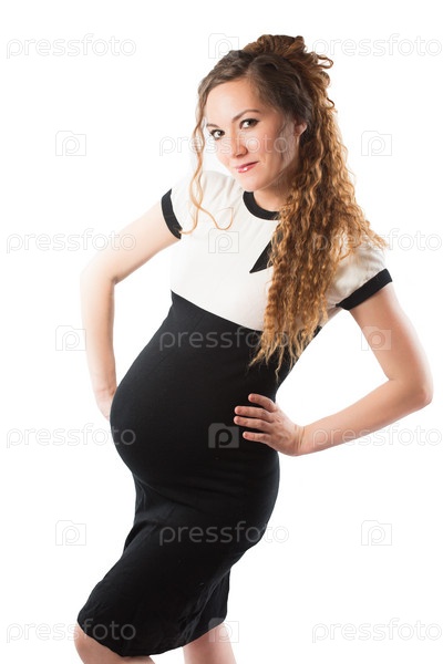 Счастливая беременная женщина на белом фоне. Концепция здоровья и красоты