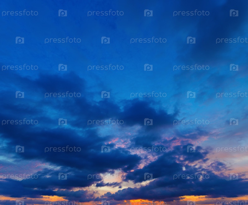 Закат на глубоком синем небе. Панорама из нескольких фотографий