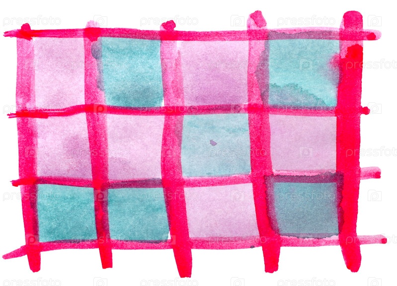 Голубой, красный акварельный нарисованный фон, изолированный на белом фоне