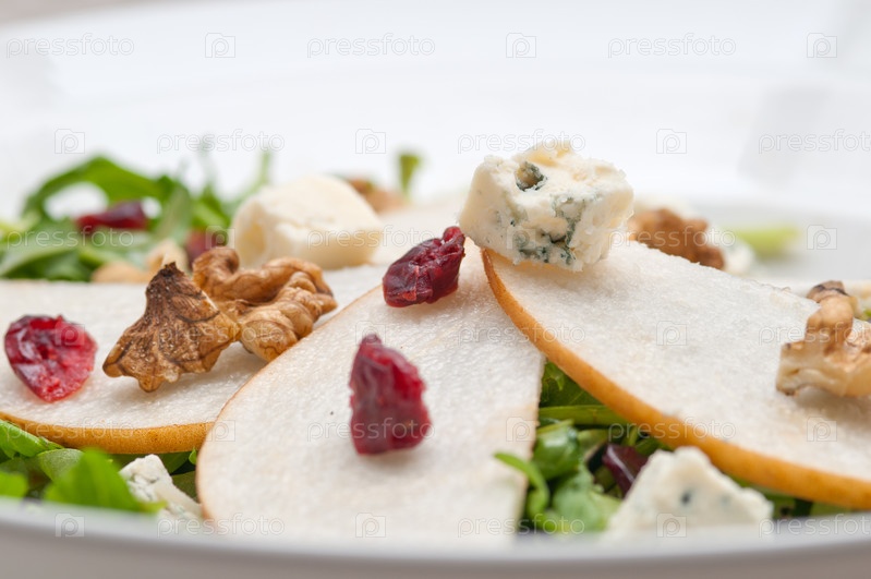 Свежий салат с грушей, рукколой, сыром горгонзола
