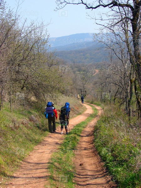Туристы идут по дороге