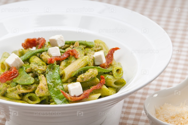 Итальянские макаронные изделия пенне с вялеными помидорами и базиликом