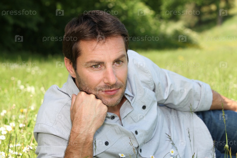 Мужчина лежит на траве