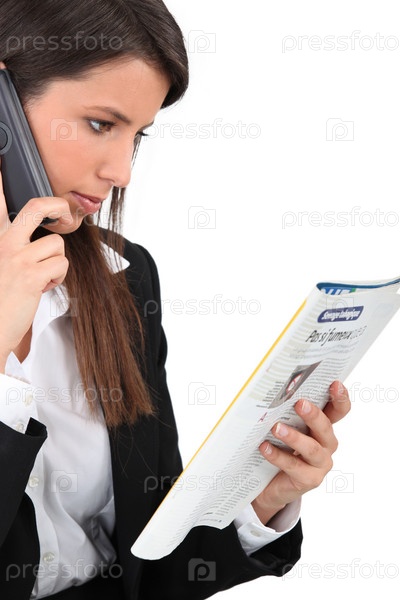 Женщина читает объявление в журнале
