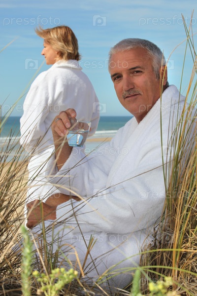 Пара отдыхает на берегу моря