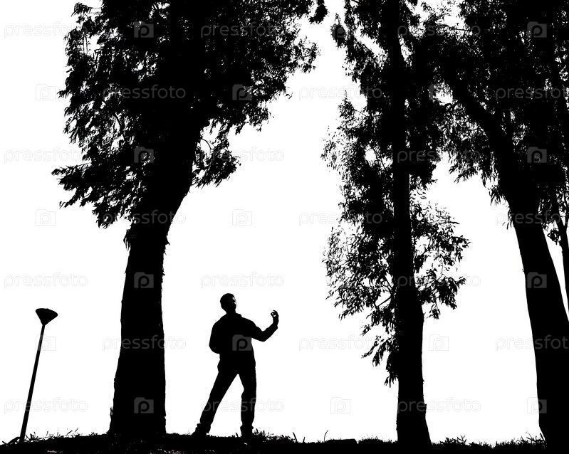 Силуэт парня на фоне деревьев