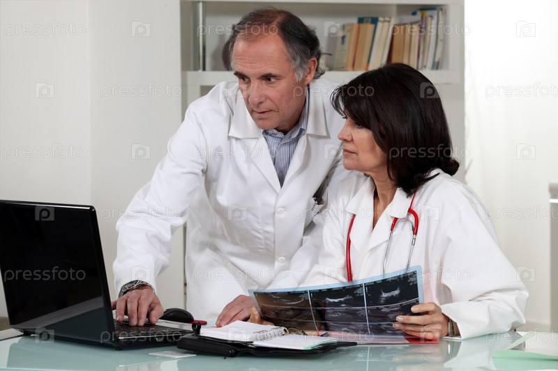 Врачи смотрят на экран ноутбука