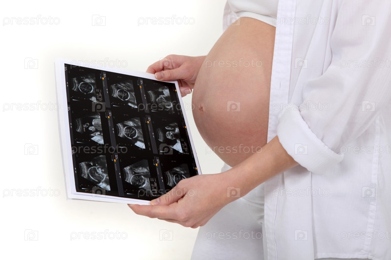 Беременная женщина смотрит на рентген ребенка