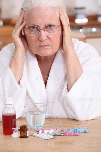 Пожилая женщина перед лекарствами