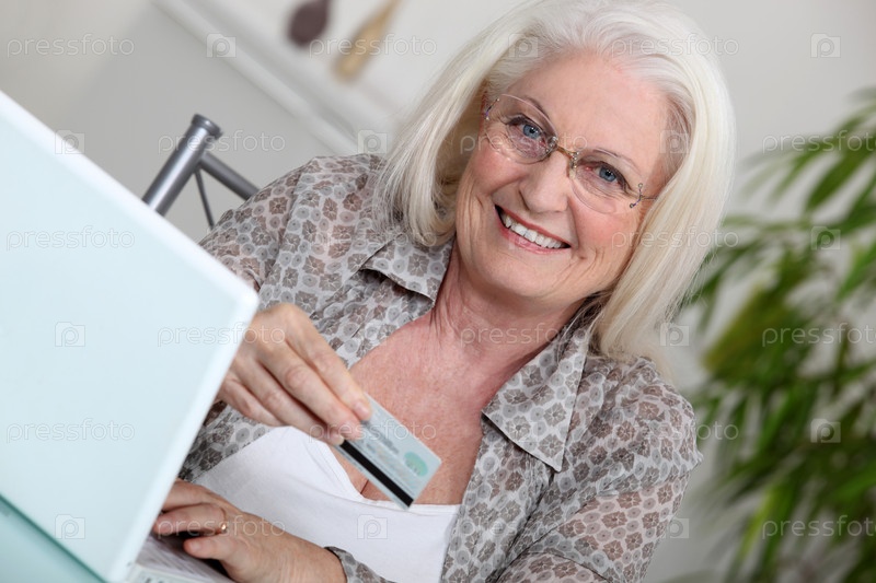 Пожилая дама делает покупки он-лайн