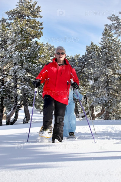 Пожилая пара на лыжах