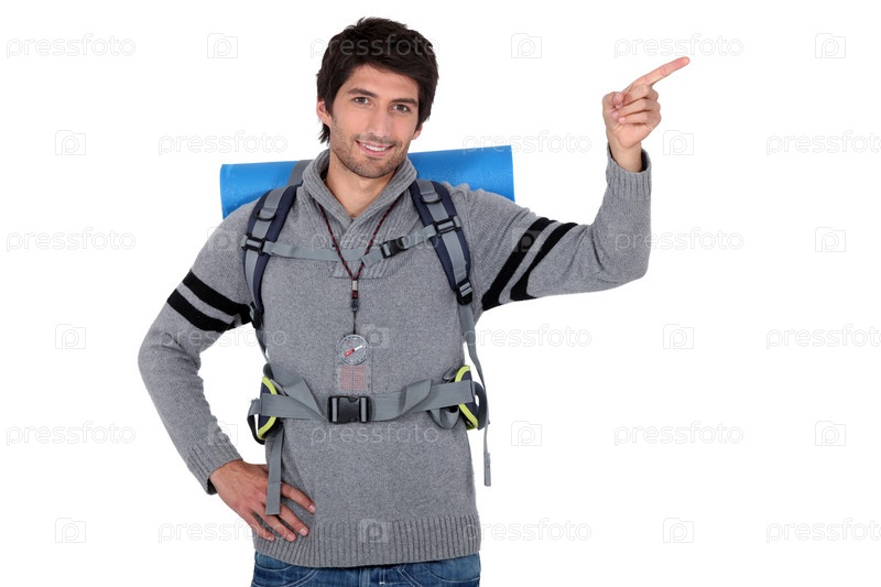 Портрет молодого человека с принадлежностями для кемпинга