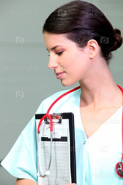 Медсестра с планшетом и стетоскопом