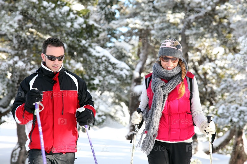 Пара на лыжах зимой