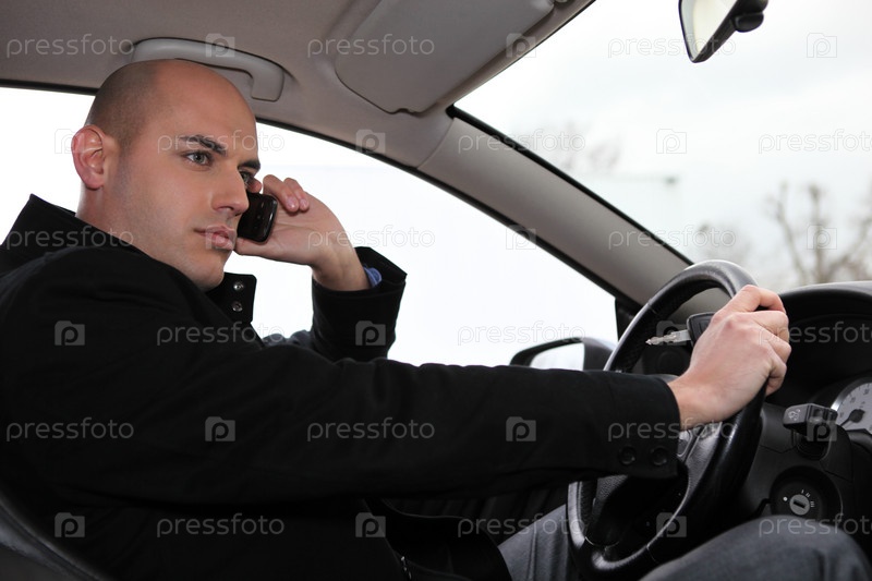 Мужчина на телефоне в своем автомобиле