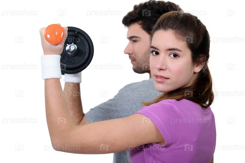 Пара занимается в спортзале