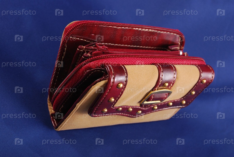 Кошелек из светлой кожи на синем фоне