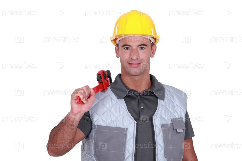 Человек с гаечным ключом на плече