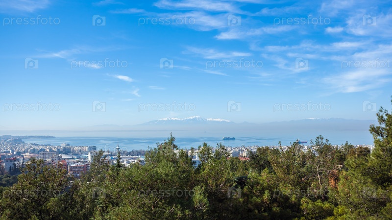Панорамный вид города Салоники, на море и горы