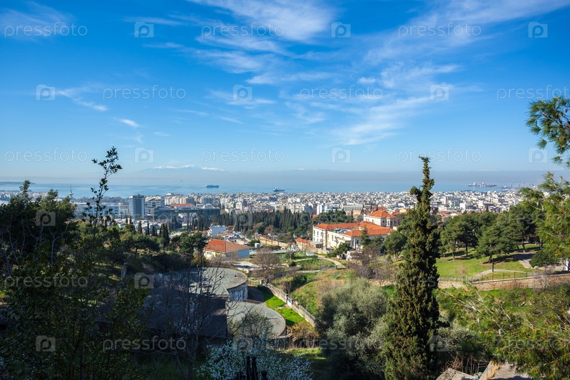 Город Салоники, море и горы
