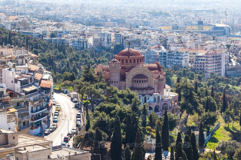 Вид Салоника и Церковь Святого Апостола Павла. Греция