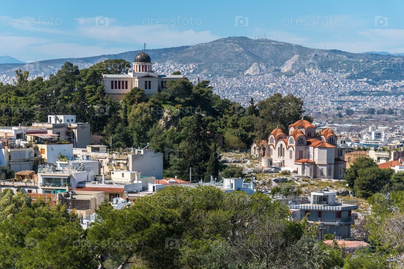 Церковь Агия Марина и Национальная обсерватория на горе в Афинах, Греция