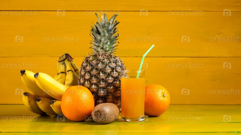 Тропические фрукты на желтом фоне