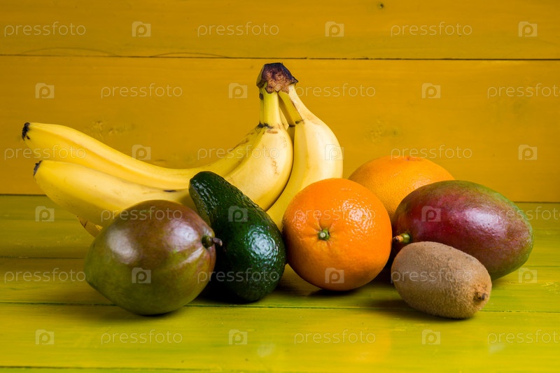 Тропические фрукты на желтом фоне