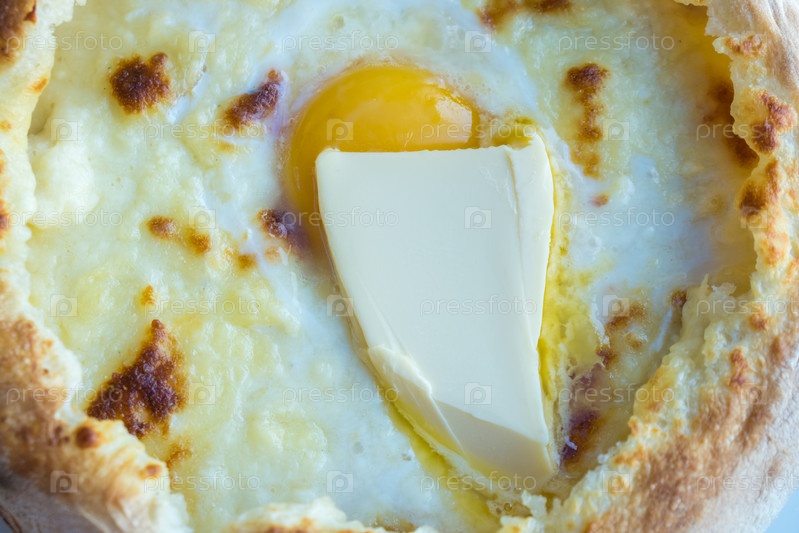 Аджарские хачапури с яйцами и маслом на столе