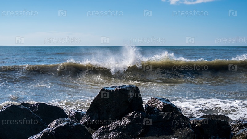Морские волны на побережье Черного моря, Поти, Грузия