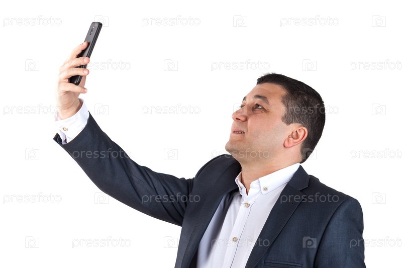 Мужчина в черном костюме с мобильном телефоном