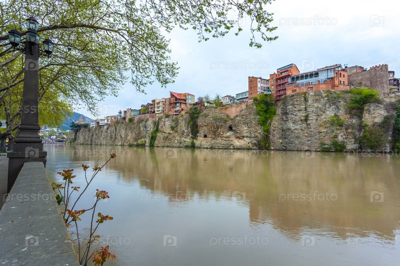 Церковь Метехи и дома на краю обрыва над рекой Кура. Тбилиси, исторический центр города
