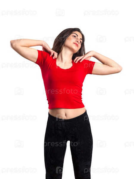 Спортивная девушка в красной рубашке