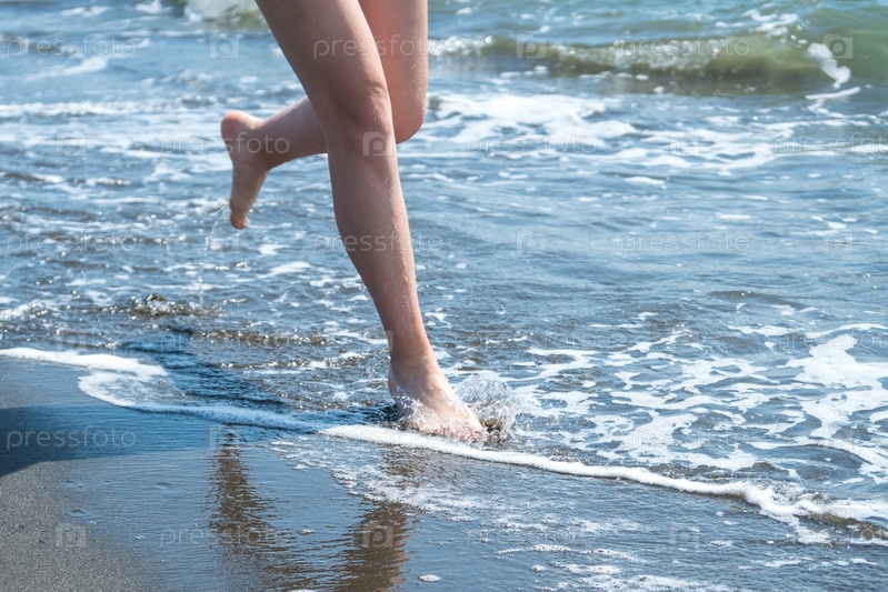 Красивая спортивная девушка бежит вдоль красивого песчаного пляжа