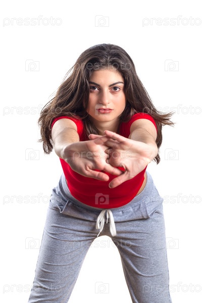 Красивая брюнетка в красной футболке