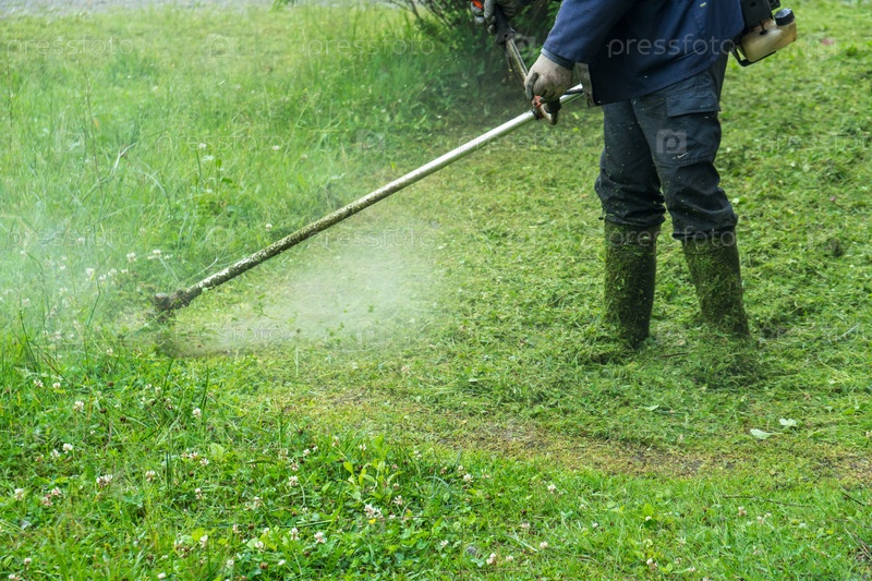 Садовник скашивает траву