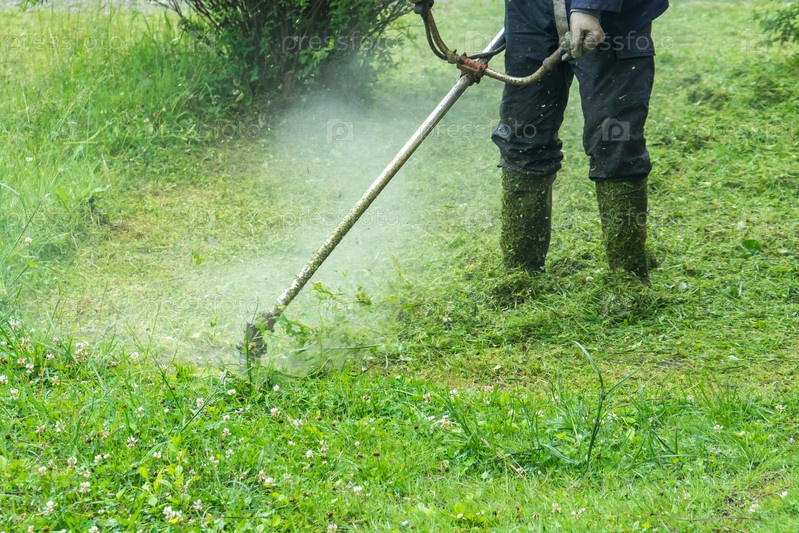 Садовник скашивает траву