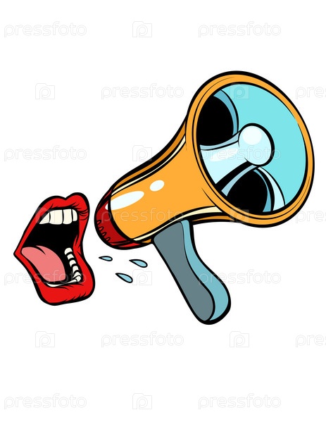 Рот кричит в мегафон. изолированный на белом фоне