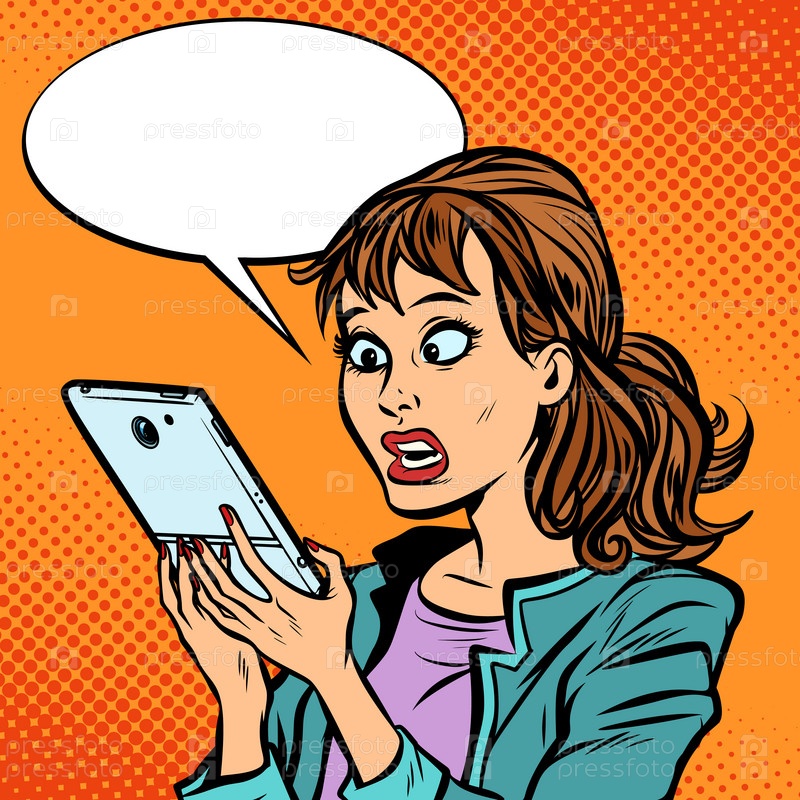Шокированная женщина читает смартфон