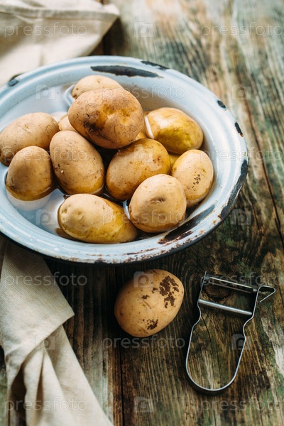 сырые картофели в миске