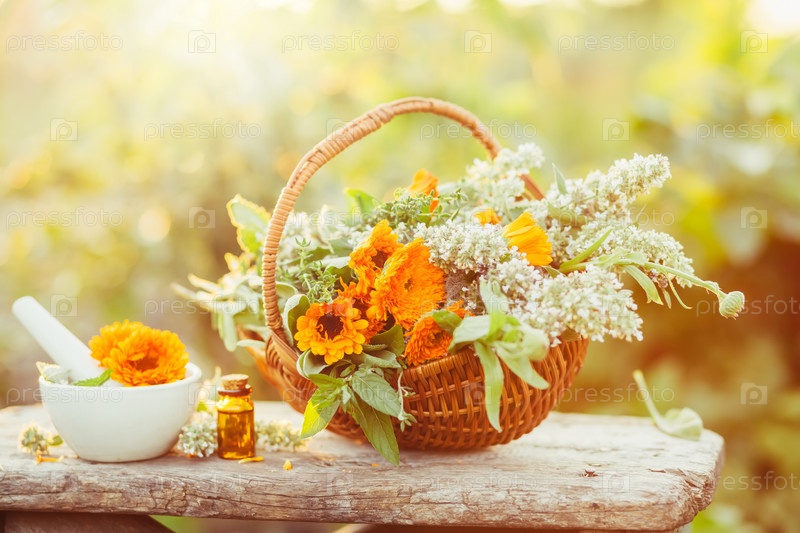Свежие травы из сада в корзине