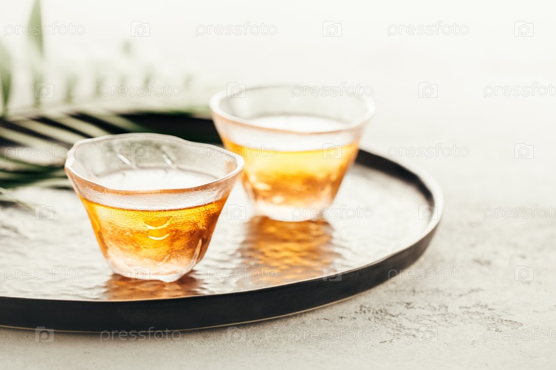 Два стакана свежеприготовленного чая на подносе