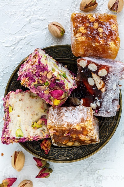 Различные сорта турецкого удовольствия на тарелке